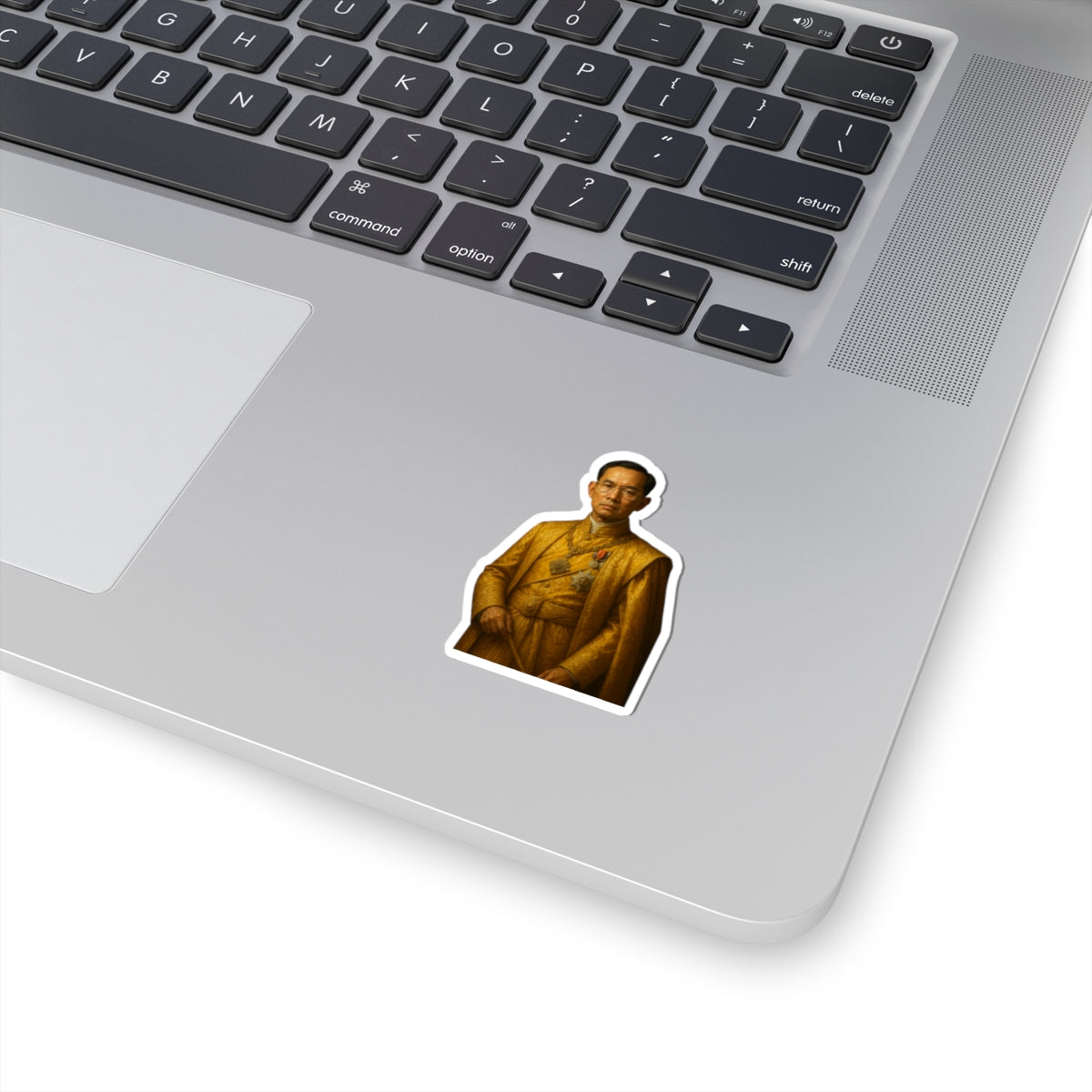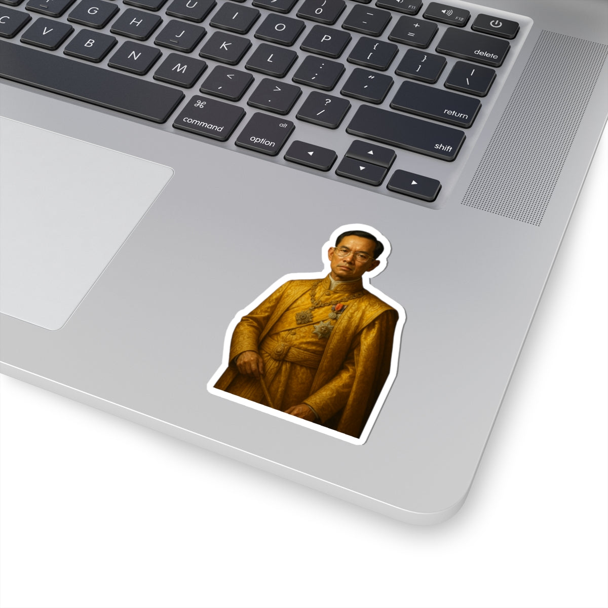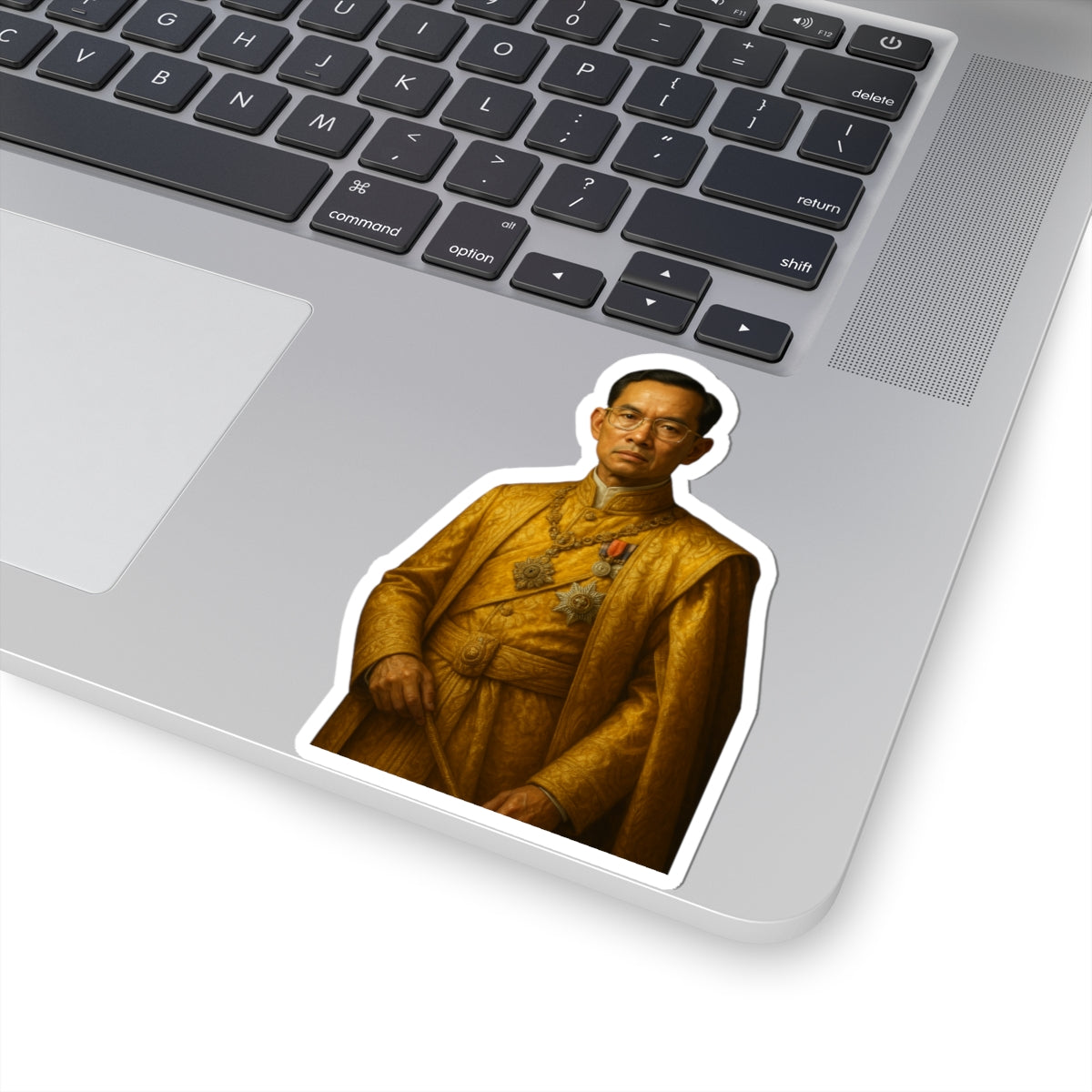 Celebra el profundo legado del Rey Bhumibol Adulyadej, también conocido como "El Gran Rey", con nuestra vibrante calcomanía única. Este sticker es la forma perfecta de honrar su legado tailandés y mostrar tu respeto por uno de los monarcas más queridos y longevos de la historia. Ideal para personalizar tu laptop, diario, botella de agua o cualquier superficie lisa, esta calcomanía añade un toque significativo y distinguido a tus pertenencias.