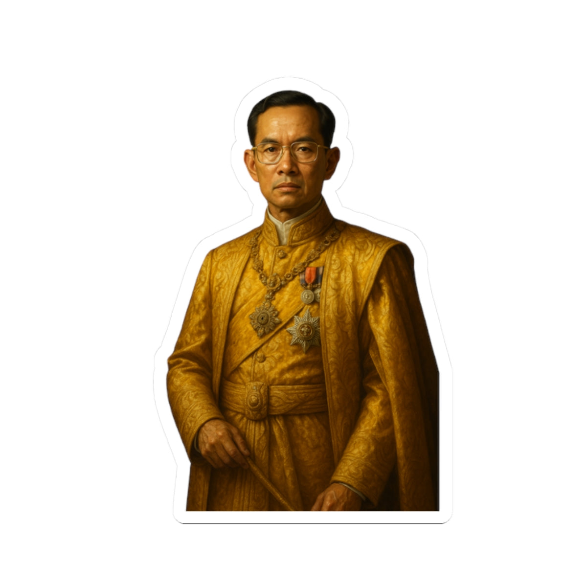 Honra la memoria y el impacto de "El Gran Rey" de Tailandia con esta calcomanía histórica de alta calidad.