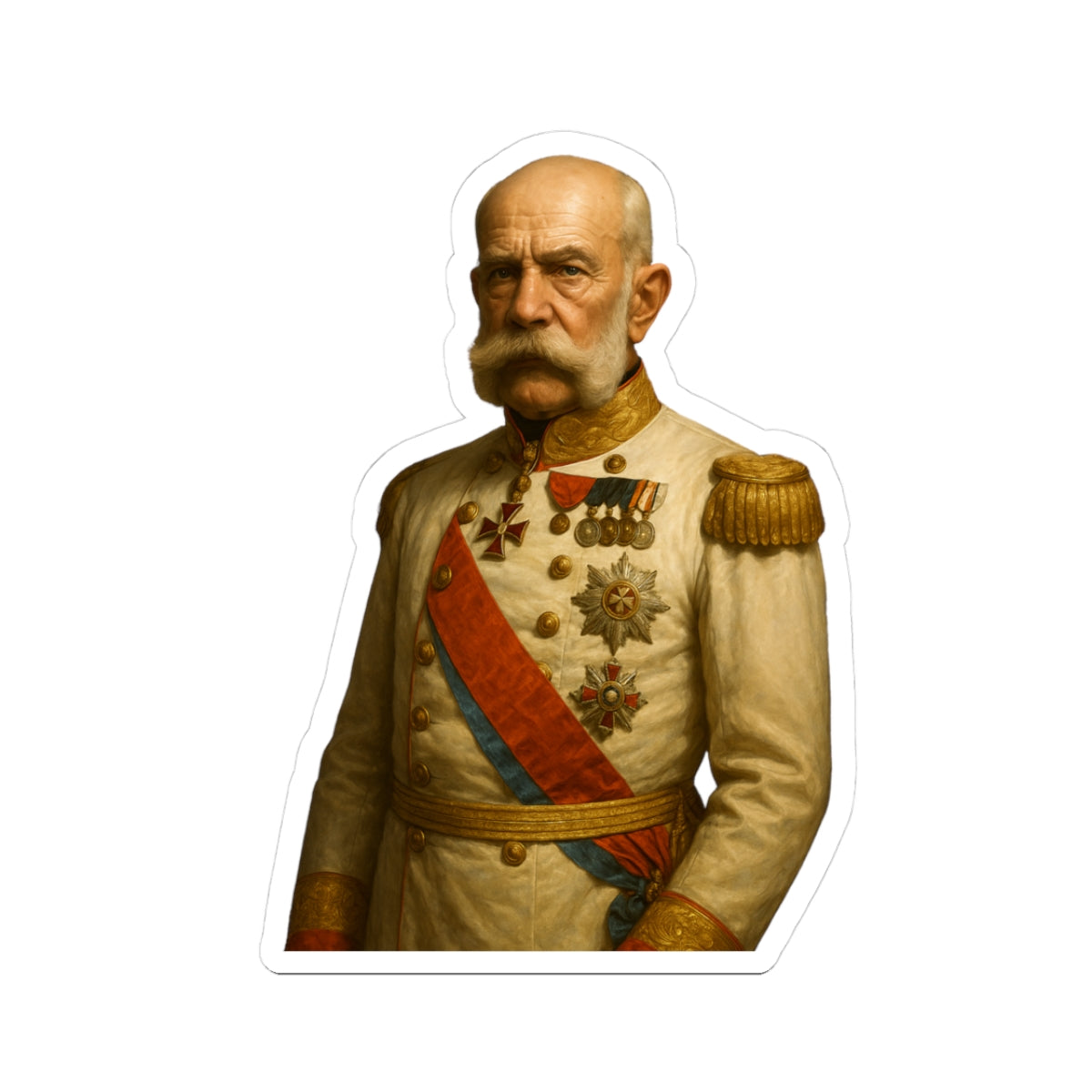 Eleva tu estilo personal con nuestro impresionante Sticker Francisco José I. Esta calcomanía conmemora al emblemático Emperador Austrohúngaro y miembro clave de la casa Habsburgo, una figura central del Siglo XIX. Con un acabado de papel brillante, no solo luce vibrante, sino que también es resistente a arañazos, lo que la hace ideal para el uso diario.
