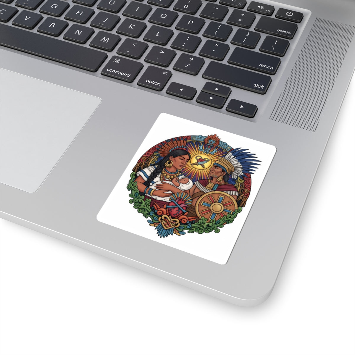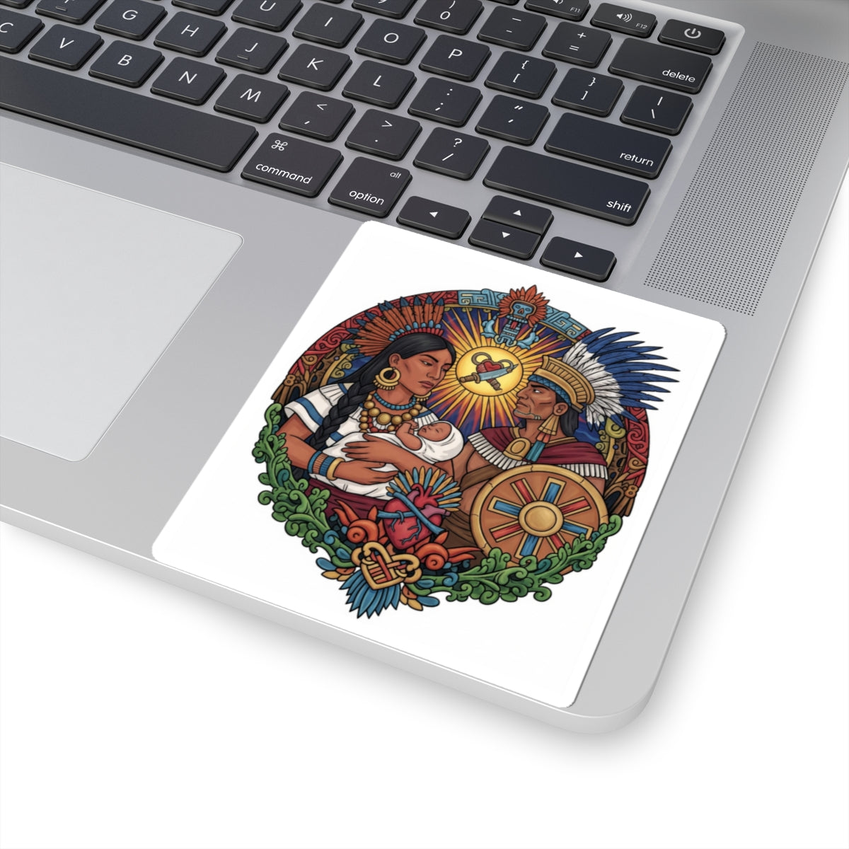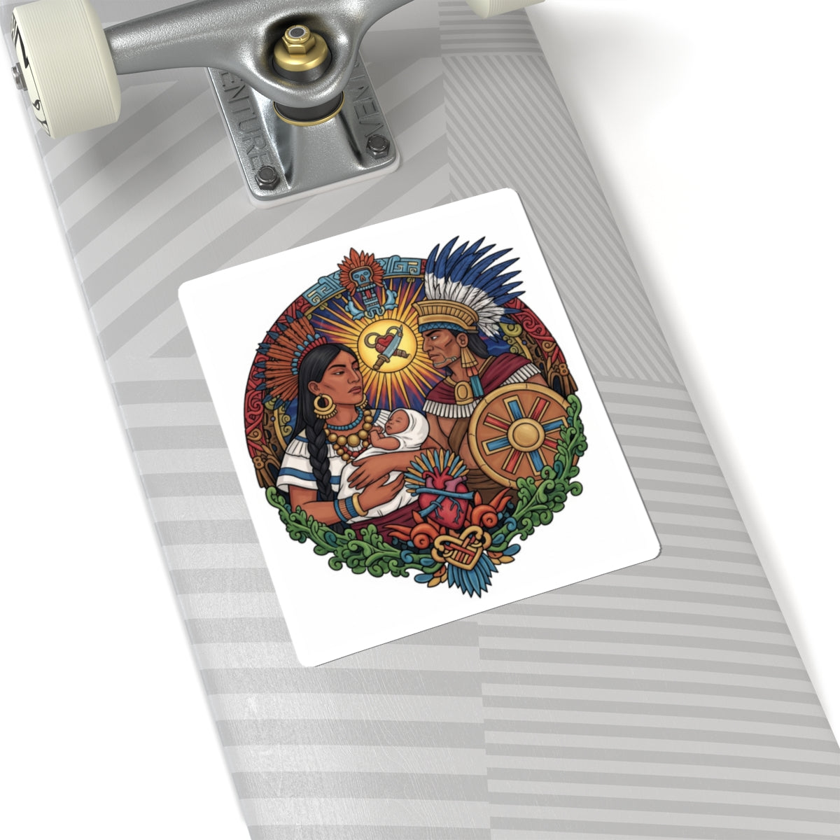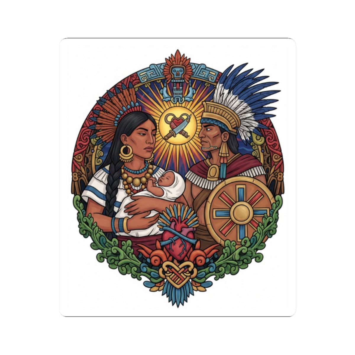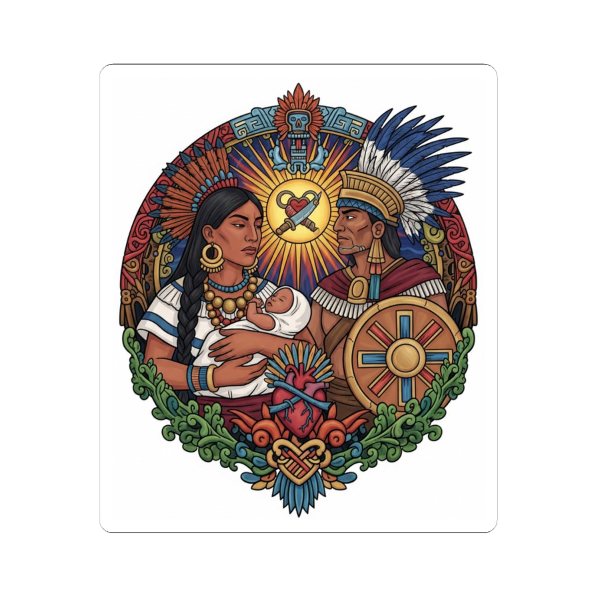 Celebra la riqueza de la cultura mexica y el profundo valor de la familia tradicional con nuestro impresionante Sticker Kiss-Cut. Este vibrante diseño captura la esencia de la familia azteca, sus lazos inquebrantables y su conexión con las raíces ancestrales de México.
