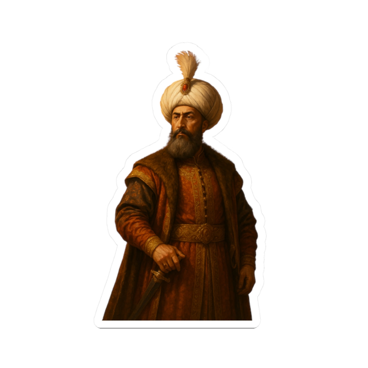 Dale un toque de historia y majestad a tus objetos con nuestro exclusivo sticker de Solimán el Magnífico. Este sticker kiss-cut de Solimán el Magnífico no es solo una calcomanía, es una pieza de arte otomano que evoca la grandeza del Imperio Otomano. Diseñado para personalizar tu laptop, botella, cuaderno o cualquier superficie lisa, este sticker histórico es perfecto para amantes de la historia, coleccionistas y cualquiera que aprecie la rica cultura turca.