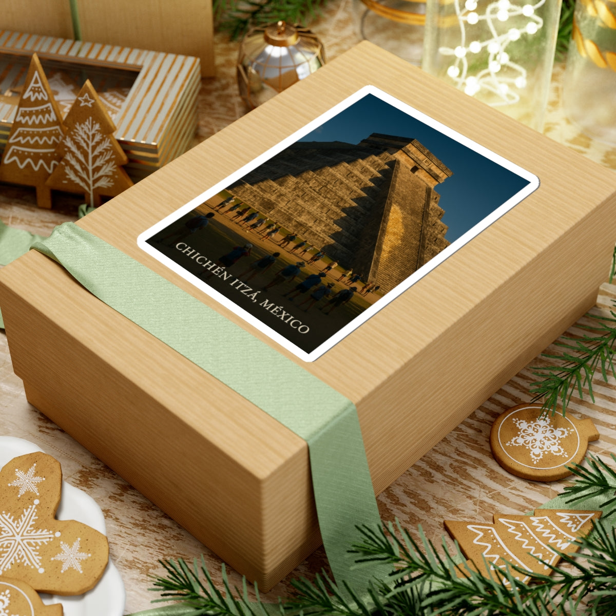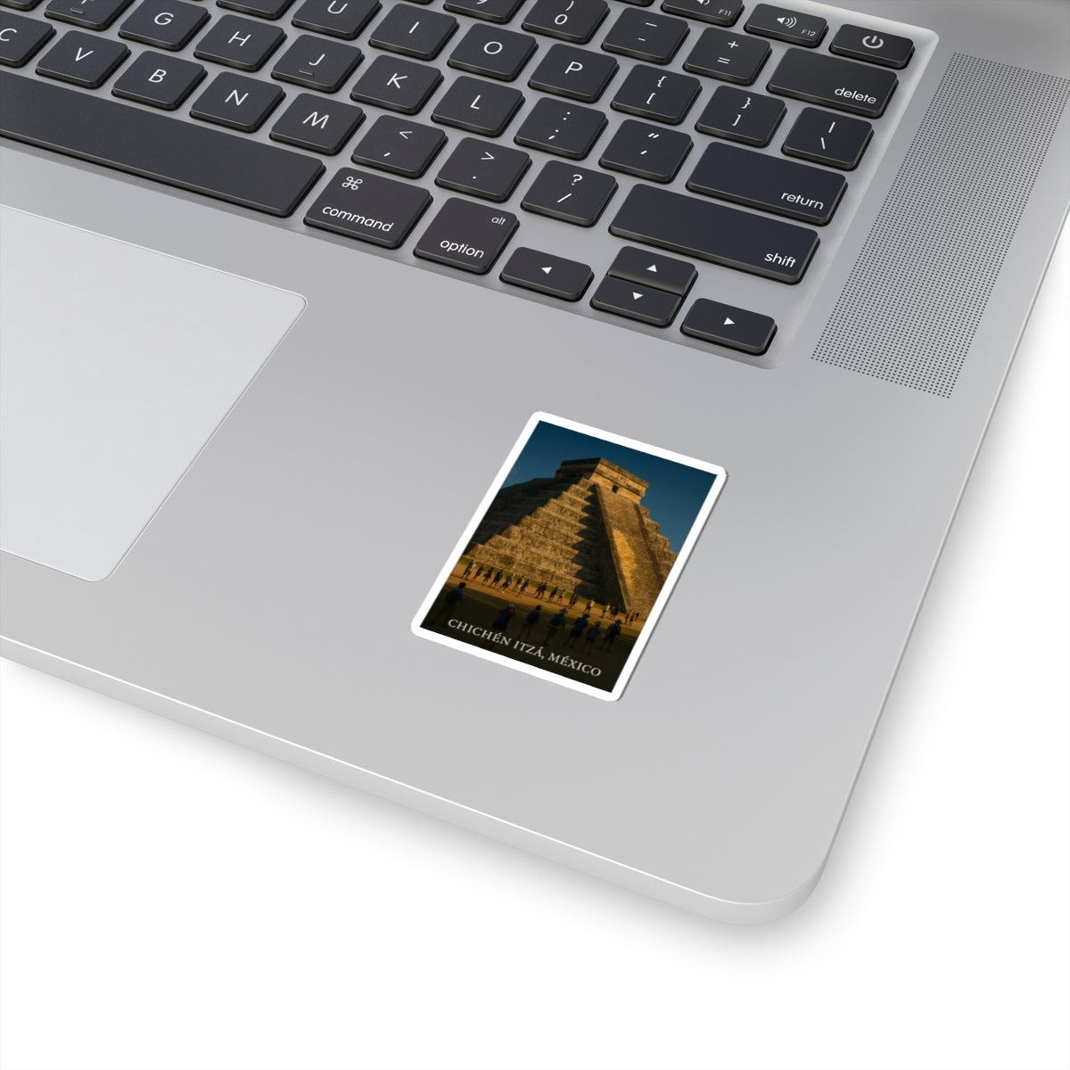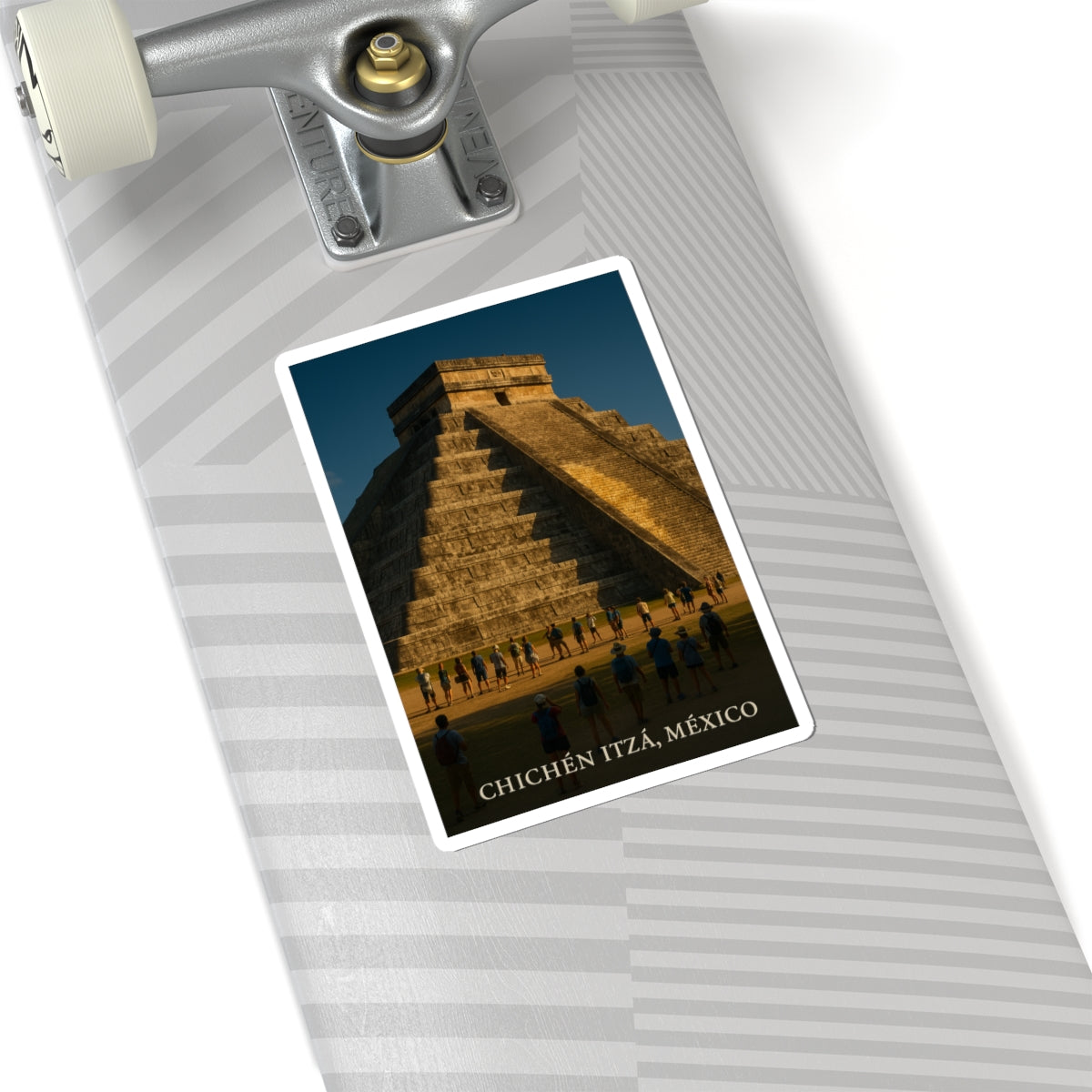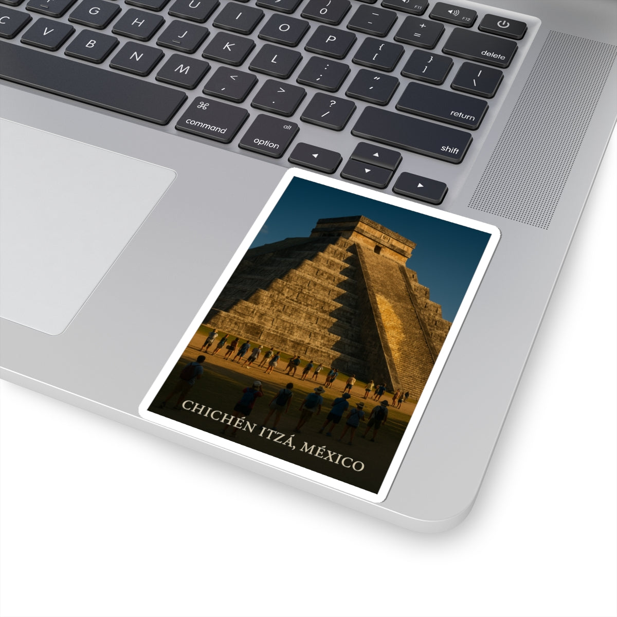 Transforma tu espacio con este impactante Sticker Kiss-Cut de Chichén Itzá. Sus vibrantes tintas ecológicas dan vida a esta icónica pirámide maya en tu laptop, diario o ventanas. Su acabado brillante añade un toque moderno y es perfecto para decorar tus objetos personales. Ideal para amantes de la cultura maya, es un regalo único para cualquier celebración.