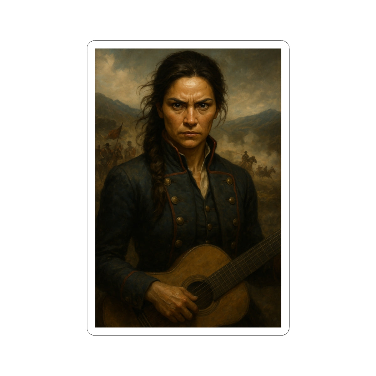 Este sticker representa la valentía de Juana Azurduy, heroína de la independencia de Bolivia. Ideal para quienes buscan inspiración en mujeres fuertes de la historia. Su diseño poderoso y acabado brillante elevan cualquier objeto personal con un mensaje de lucha y libertad.