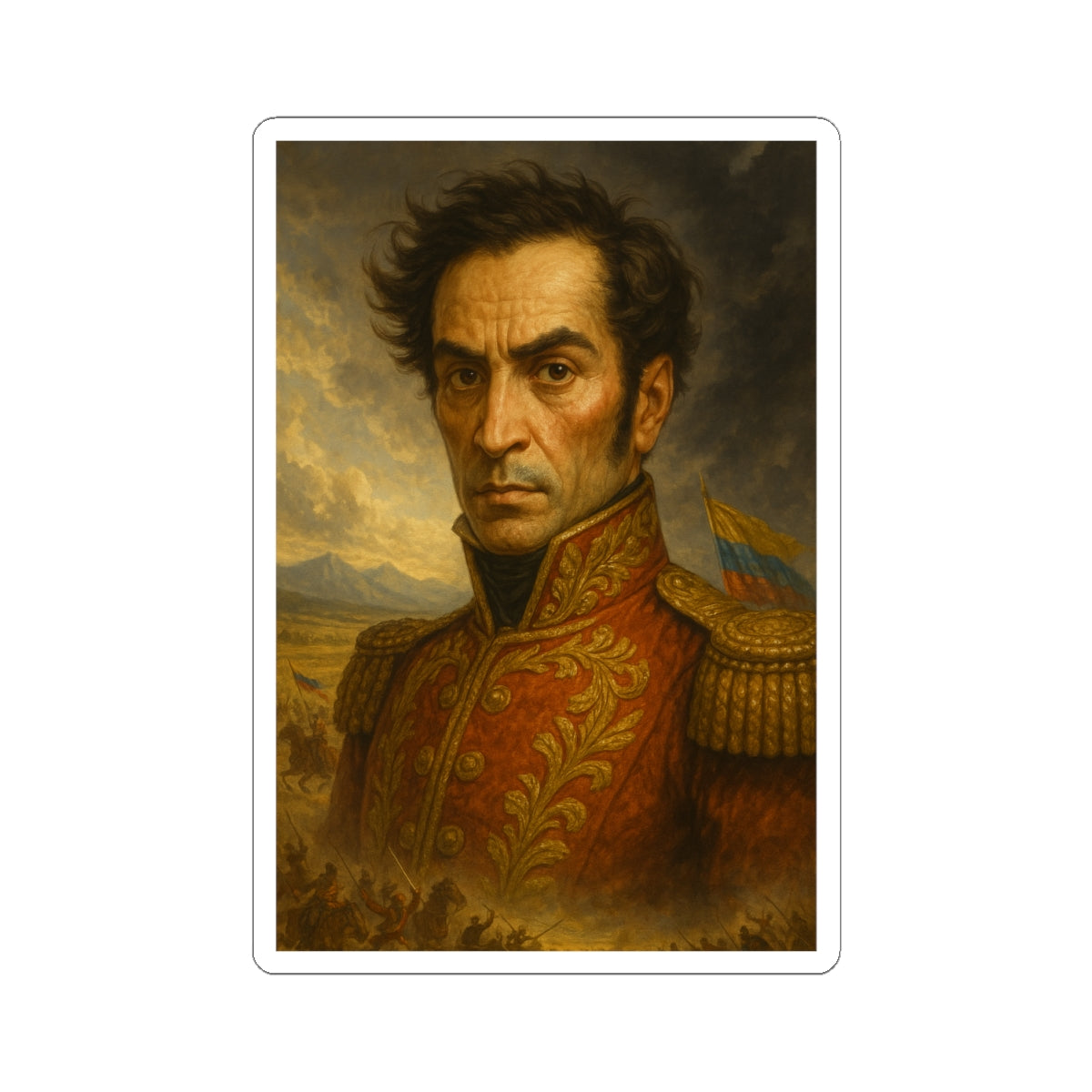 Estos vibrantes stickers kiss-cut de Simón Bolívar son la forma perfecta de expresar tu personalidad y estilo. Con su acabado brillante, ofrecen una superficie resistente a arañazos, haciéndolos ideales para embellecer laptops, diarios o ventanas. Estos diseños llamativos no solo son duraderos, sino que también están impresos con tintas ecológicas que resaltan colores extraordinariamente vivos. Ya sea que busques decorar tu espacio o sorprender a un amigo, estos stickers del "Libertador" añaden un toque de distinción a cualquier ocasión. Perfectos para adultos que aprecian la figura del visionario y líder militar clave en la independencia de Venezuela y otras naciones sudamericanas, son regalos considerados para cumpleaños, celebraciones o simplemente porque sí. ¡Eleva tu decoración esta temporada con stickers que realmente destacan y honran a Simón Bolívar!