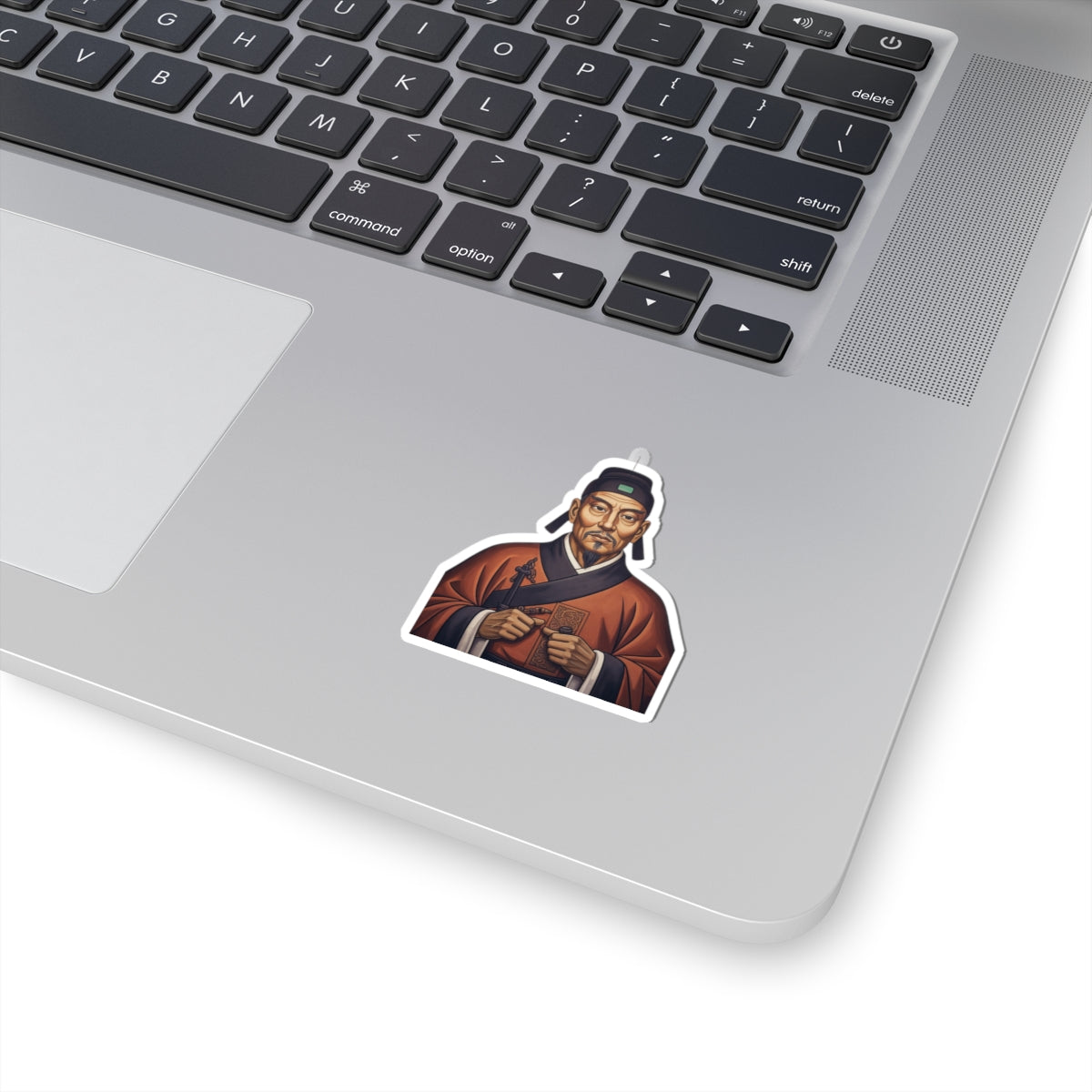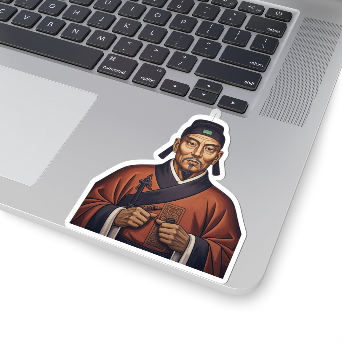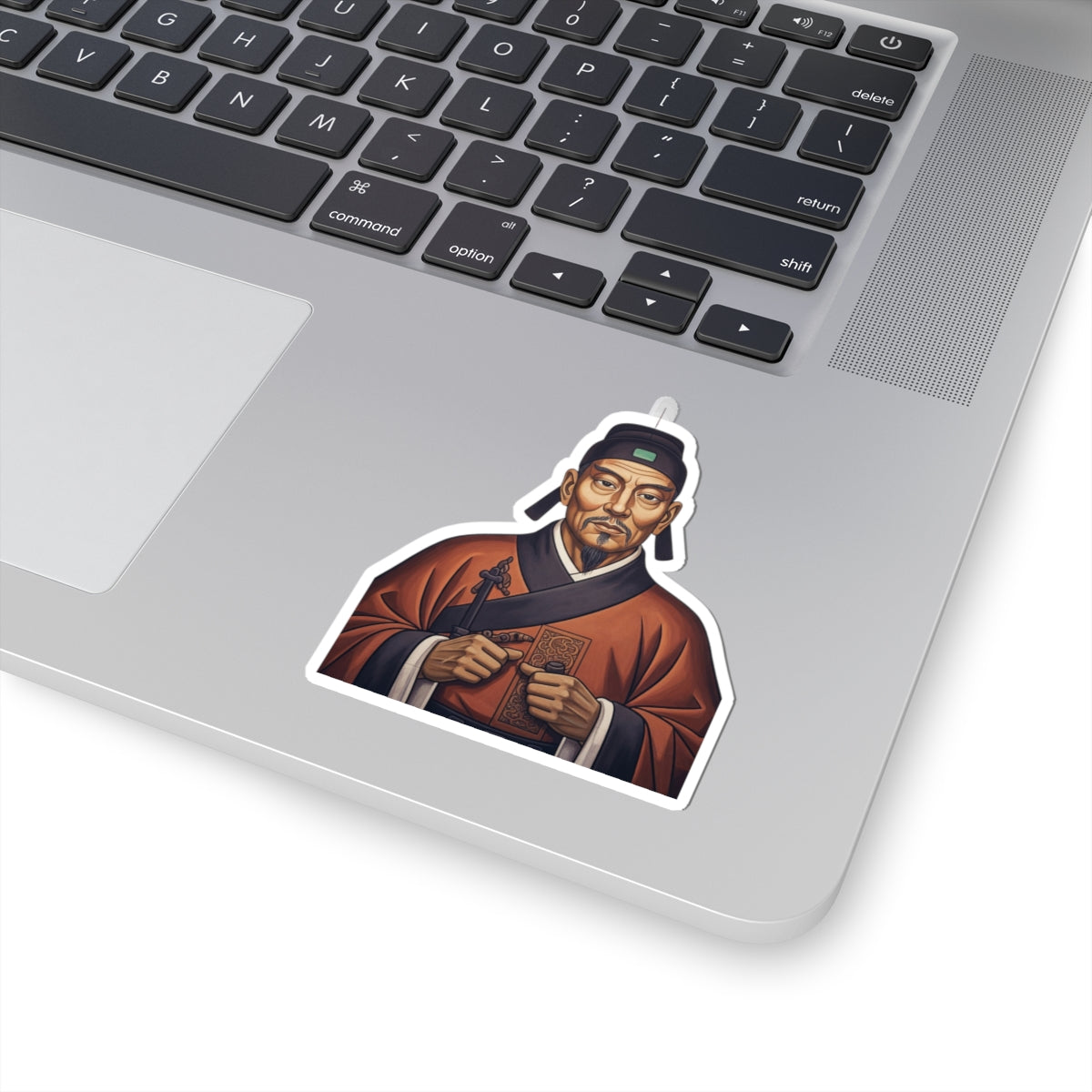 Eleva tu espacio con este vibrante sticker kiss-cut de Sun Tzu, una representación visual de la sabiduría de "El Arte de la Guerra". Este diseño llamativo añade un toque distintivo a laptops, cuadernos, ventanas y más, infundiendo tus objetos cotidianos con carácter y una conexión a la estrategia militar ancestral.