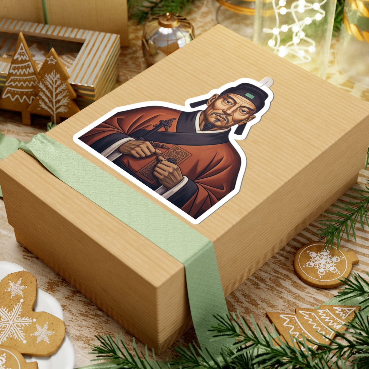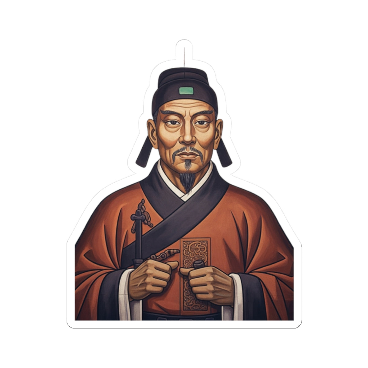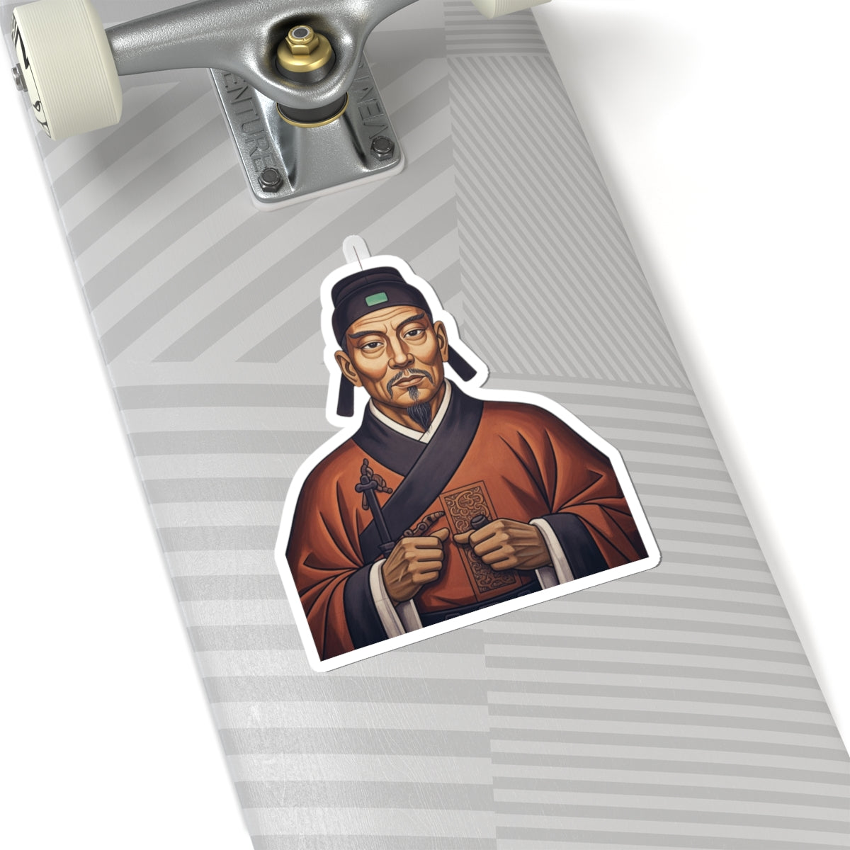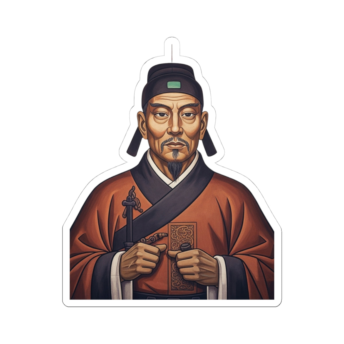 Eleva tu espacio con este vibrante sticker kiss-cut de Sun Tzu, una representación visual de la sabiduría de "El Arte de la Guerra". Este diseño llamativo añade un toque distintivo a laptops, cuadernos, ventanas y más, infundiendo tus objetos cotidianos con carácter y una conexión a la estrategia militar ancestral.